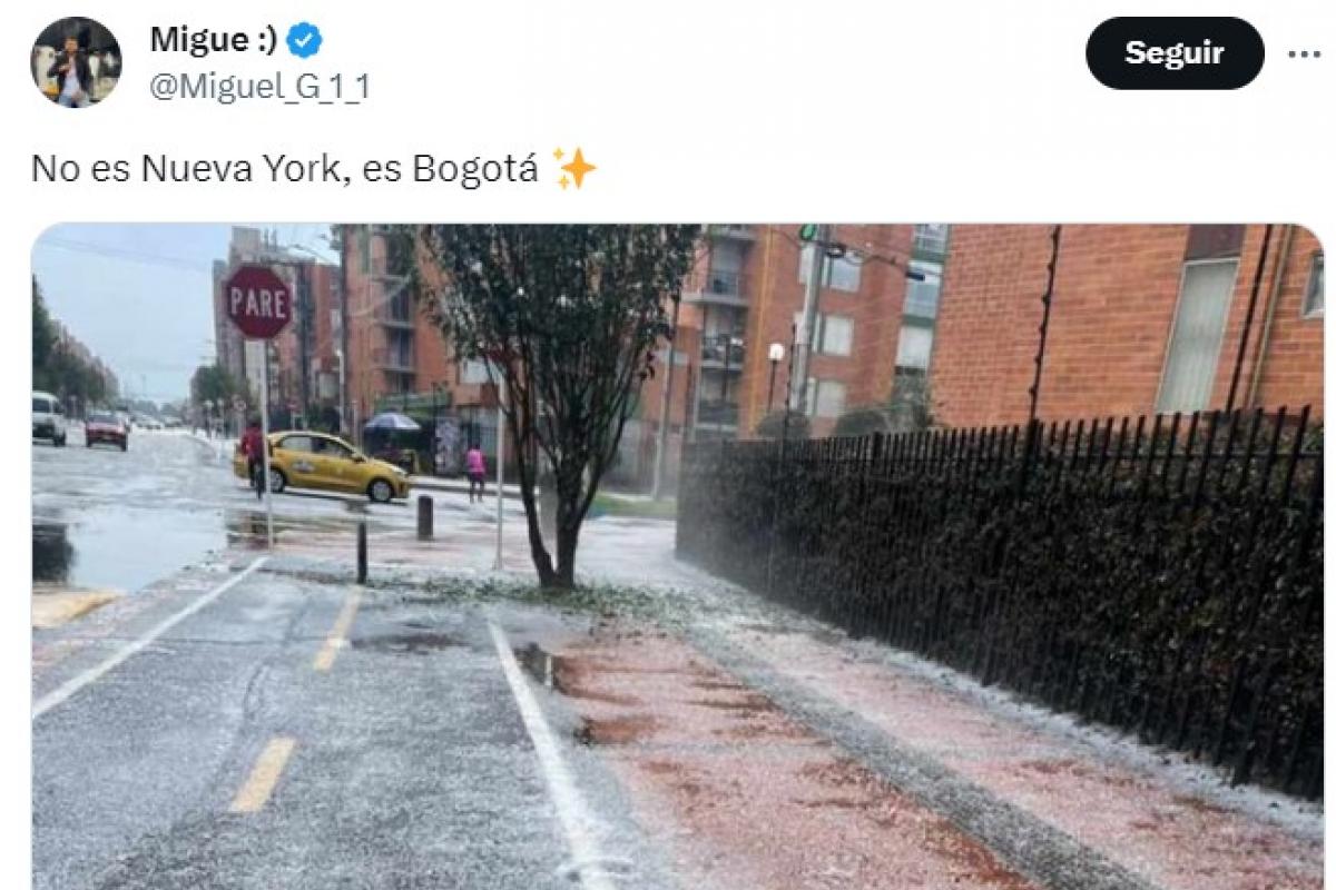 Una de esas fotografías la ha compartido el usuario de X @miguel_G_1_1. "No es Nueva York, es Bogotá", aseguró en el tuit, junto a la instantánea publicada en la red social.