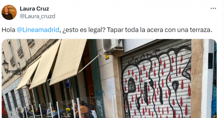 "¿Esto es legal? Tapar toda la acera con una terraza", ha expresado en la publicación, que cuenta con más de 1.000 likes y 315.000 reproducciones en menos de 24 horas.