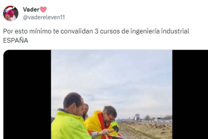 Sus manifestaciones, además, están dejando multitud de escenas curiosas, más allá de las propias imágenes de las concentraciones. Una de las que más se ha destacado en las últimas horas y que se ha hecho viral en X es la que ha publicado el usuario Vader.