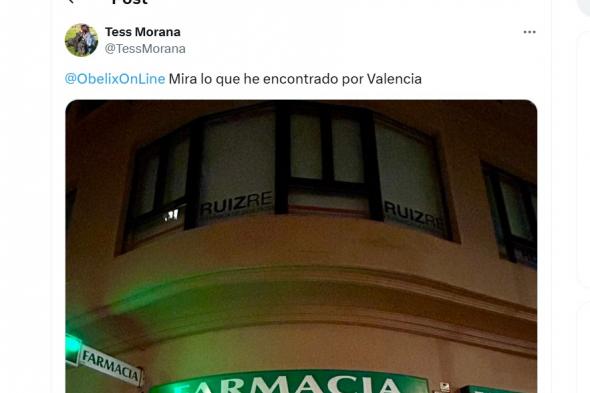 "Mira lo que he encontrado por Valencia", dice el usuario junto a la foto de la puerta de la farmacia, que está cerrada y en cuya verja se ve un dibujo de Panoramix, el druida de Astérix y Obélix, que era el único de crear la poción con la que se obtenía una fuerza sobrenatural.