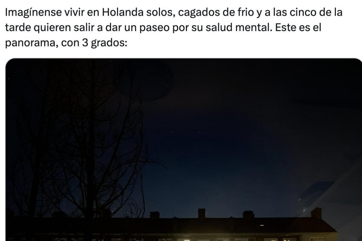 Tras esto, ha comentado: "Imagínense vivir en Holanda solos, cagados de frio y a las cinco de la tarde quieren salir a dar un paseo por su salud mental. Este es el panorama, con 3 grados".