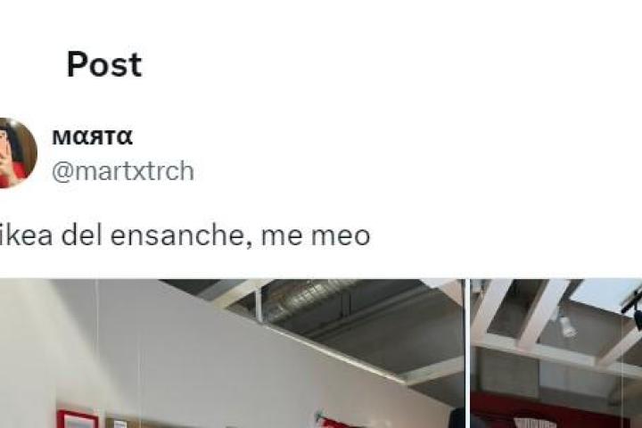 Ha sido la usuaria de X @martxtrch quien ha subido varias fotos de ese Ikea junto al mensaje: "El Ikea del ensanche, me meo". Y en las fotografías se ve cómo las estancias que recrean partes de las casas están decoradas con motivos del Rayo Vallecano, el equipo de fútbol de la zona.