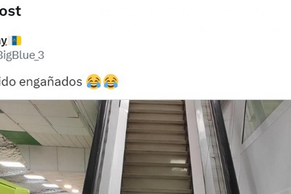"Hemos sido engañados 😂😂", ha escrito junto a la imagen de eso que tanto le ha llamado la atención: unas escaleras tradicionales, de las que no se mueven, pero rodeadas de las gomas y pasamanos propias de las escaleras mecánicas.
