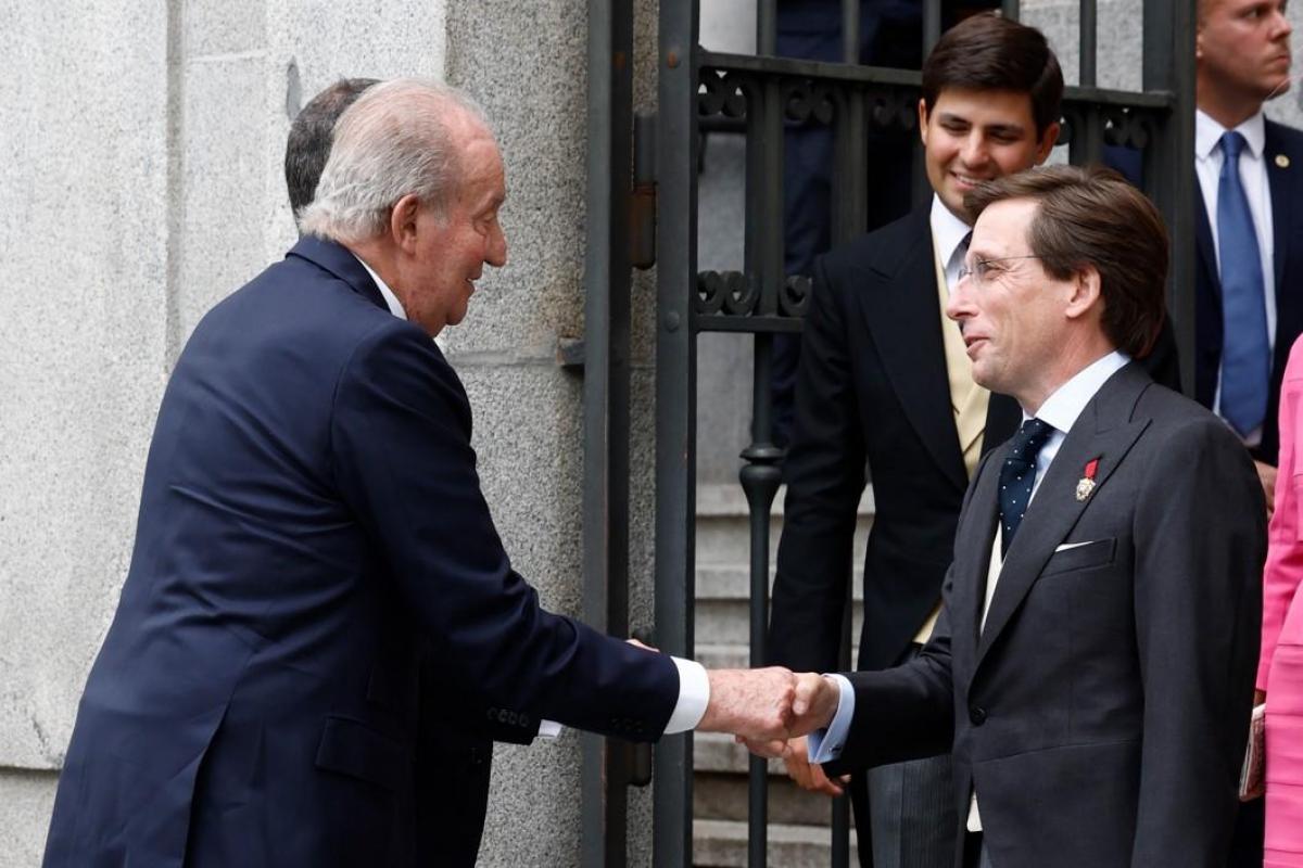 Su llegada a la Iglesia Parroquial de San Juan Bautista, situada en pleno centro de Madrid, ha sido uno de los momentos más destacados de la boda, sobre todo, por el gesto que ha tenido el padre de Felipe VI con el alcalde de Madrid.