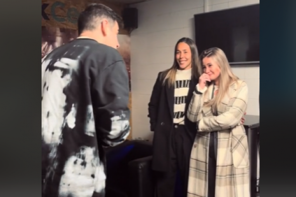 Por ello, Gallardo fue junto a Vicente a uno de estos shows y tenía preparada una sorpresa inolvidable. La futbolista fue al camerino de Melendi con su pareja, donde además del cantante estaba toda la banda.