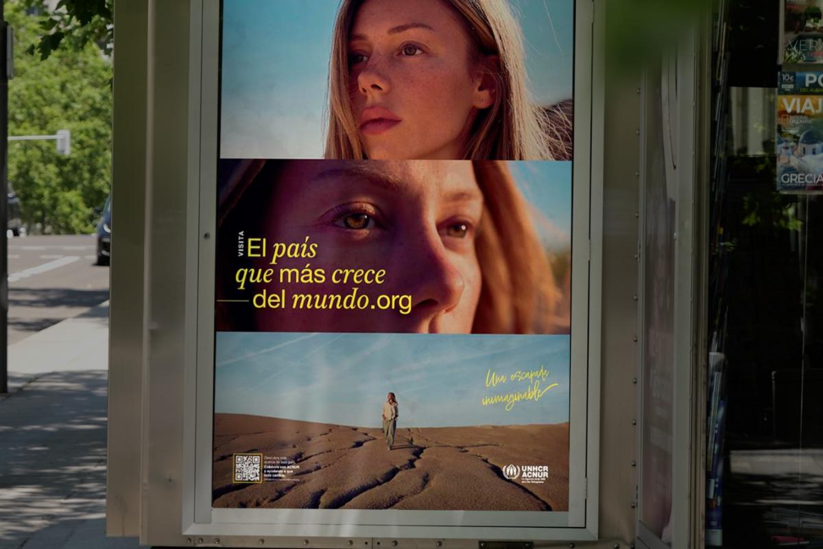 En Madrid, durante las últimas semanas y con motivo de la celebración del Día Mundial del Refugiado el pasado 20 de junio, se han colocado carteles en diferentes puntos para reflejar la situación en la que viven estas personas. Esta acción forma parte de la campaña El país que más crece del mundo, promovida por ACNUR (la Agencia de la ONU para los Refugiados), que ha contado con el trabajo de la agencia Dentsu Creative.