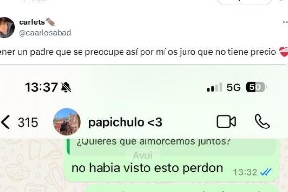 Entonces llegan los mensajes de su padre que han cautivado a todo X: "Era para almorzar en el bar. ¿Cómo te encuentras? Es que te percibo como desanimado, ya sé que es una percepción mía, pero si quieres podemos hablar... estoy curado de espanto".