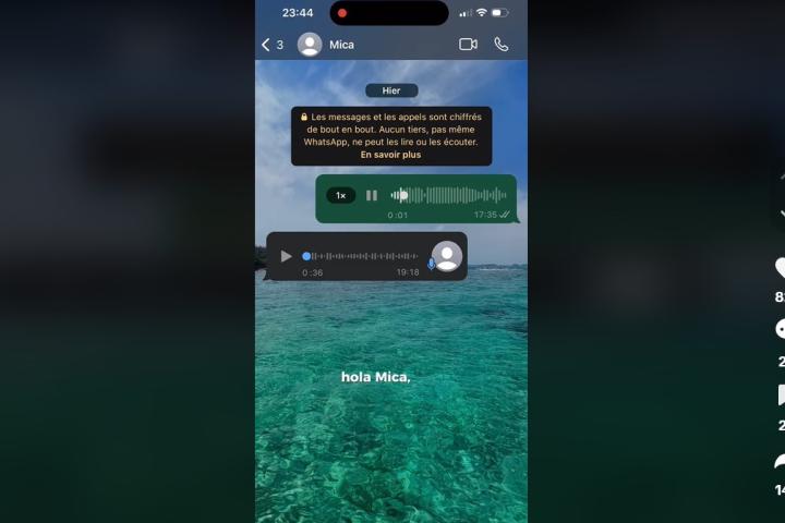 "Hola, Mica, soy Amaya. Tía, que no tengo internet, no había caído. Que ya estamos en Ginebra, nos vamos a dar una vuelta y a las siete quedamos en la terraza. Si vas tarde avísanos, ¿vale? Y, si no, pues te vemos allí", fue el mensaje que mandó la usuaria.