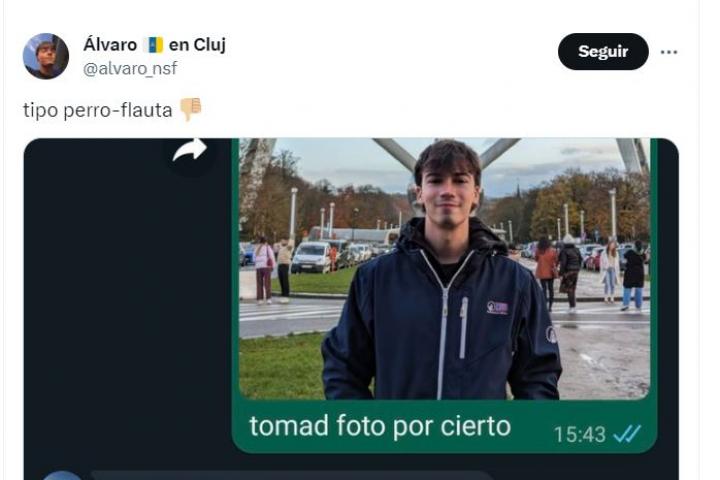 El usuario de X @alvaro_nsf ha publicado la conversación de WhatsApp que ha tenido con sus padres tras de mandarle una fotografía en el Atomium, uno de los monumentos más conocidos de Bruselas.