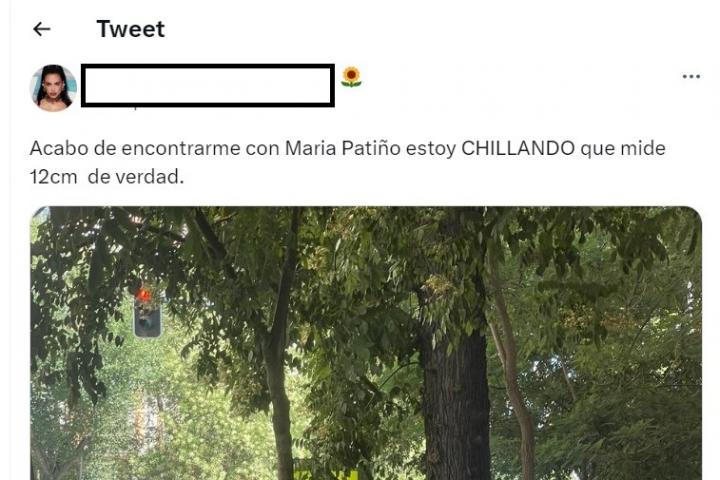 "Acabo de encontrarme con María Patiño estoy CHILLANDO que mide 12cm de verdad", publicó el tuitero, que no mencionó a la presentadora con la '@', la forma de que le llegue directamente a su cuenta de la red social.