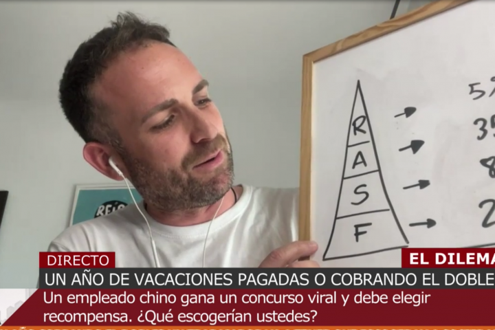 "Algo más difícil de medir: 5% de realización personal y profesional. Si somos felices en el trabajo también te ayuda a ser feliz y si eres feliz con tus relaciones, formación y creatividad destinamos un 5% a esa felicidad", ha sumado el matemático.