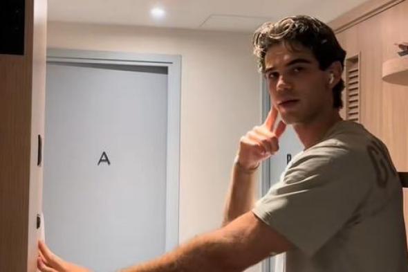 "Y la cama es un canapé, por lo que aquí tengo prácticamente toda mi ropa, más la que tengo justo a la entrada de la habitación. Y esto es lo que se ve desde mi cama: tenemos tele, productos, suplementos, las bambas que las guardo ahí arriba y ropa sucia por aquí arriba", ha seguido contando el catalán.