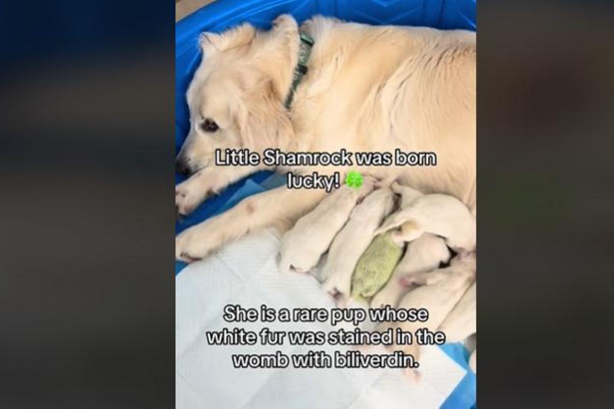 Según ha contado a la revista 'People', no es tan raro que en los pequeños perros de color claro tengan "un poco de verde", pero normalmente este color se "borra inmediatamente".