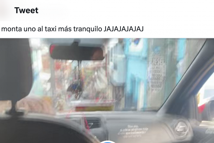 "Dios mio, si este es mi último viaje que sea hacia ti", reza el mensaje escrito dentro del coche. "Se monta uno al taxi más tranquilo JAJAJAJAJAJ", dice el autor del tuit en el enunciado de la publicación.