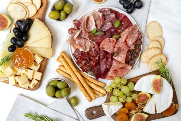 Lo que sí es conveniente tener en cuenta es que lo ideal es cortar los embutidos y quesos justo antes de servirlos o, si vienen empaquetados, desprecintarlos lo más pegado posible al momento de ir a comerlos. Se aconseja también tener cuidado con la temperatura ambiente, cubrir los alimentos ante la posible presencia de moscas u otros insectos si se está en mese de calor y ofrecer utensilios individuales para que los invitados puedan pinchar lo que desean sin tener que toquetear el resto de alimentos.