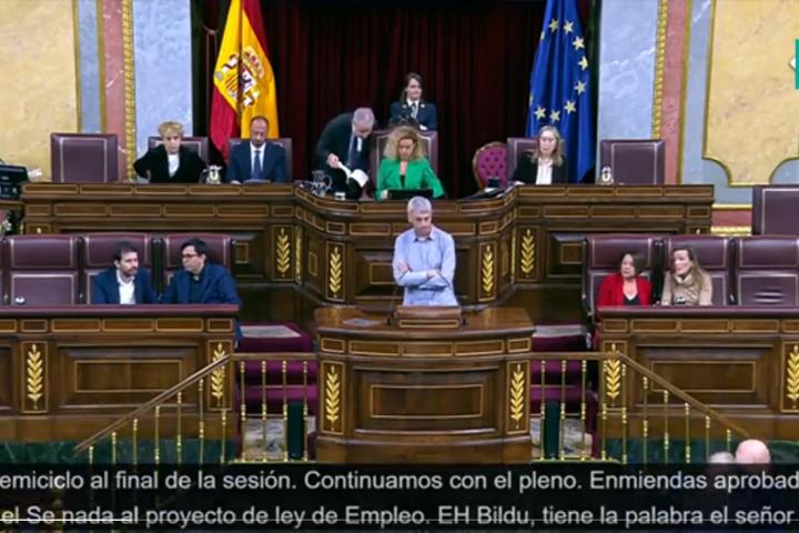 Tuvo lugar justo después de que terminase el debate sobre la ley del aborto este jueves y comenzase el de la ley de empleo. El primero en intervenir era el diputado de Bildu Oskar Matute, que tuvo que presenciar desde la tribuna un momento pocas veces visto.
