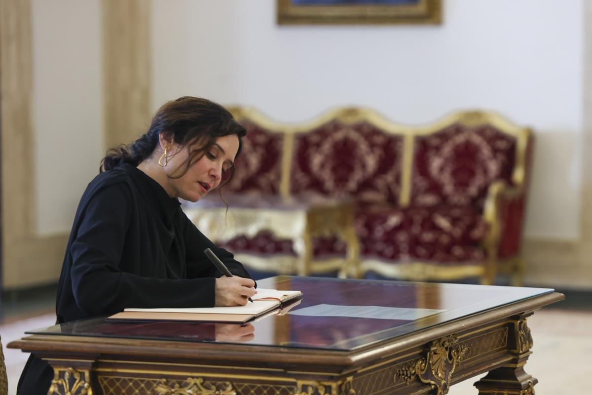 De vuelta a Madrid, la presidenta de la Comunidad ha dado que hablar por lo que ha hecho cuando ha ido a firmar en el libro de condolencias donde ya dejaron su rúbrica los reyes de España.