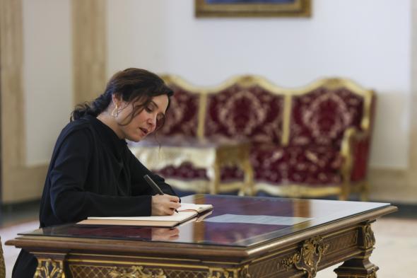 De vuelta a Madrid, la presidenta de la Comunidad ha dado que hablar por lo que ha hecho cuando ha ido a firmar en el libro de condolencias donde ya dejaron su rúbrica los reyes de España.