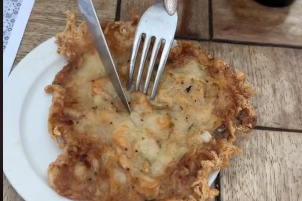 Según van probando comidas le van dando notas y lo primero que prueban es la tortilla de camarones. Ahí muchos han comentado que se come con la mano y no con cuchillo y tenedor. "Crujiente. Un 8. Muy buena. Hay mini gambas, ¿no?", dice una de ellas. "Un 9", le pone la otra joven, que dice que lleva "poco huevo".