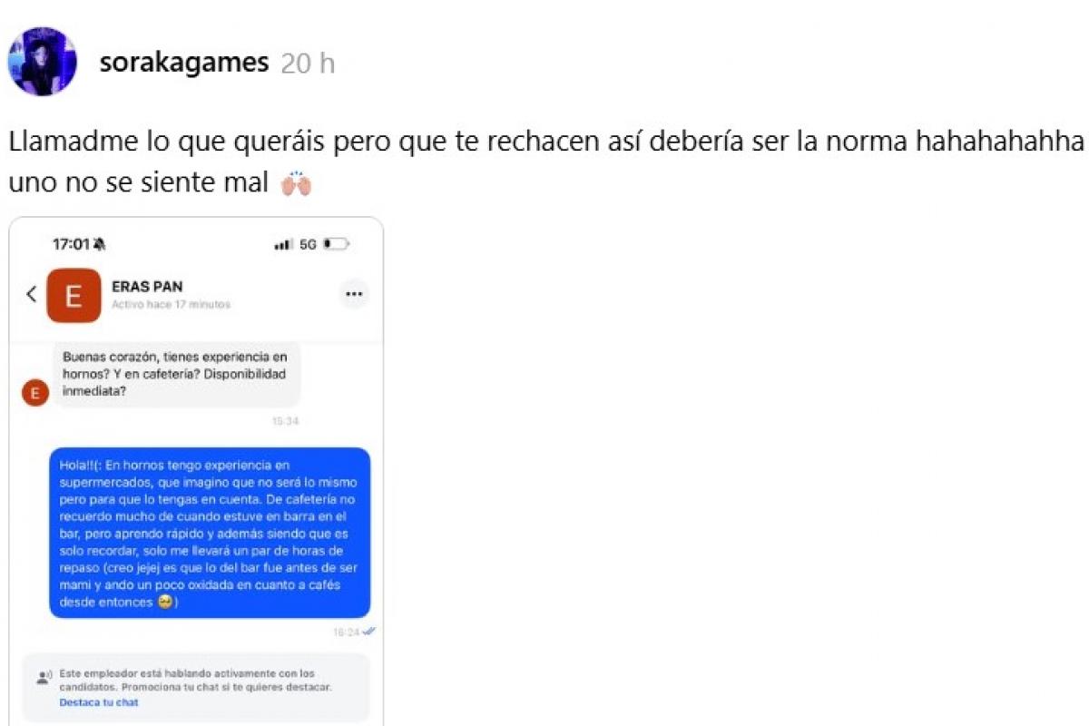 La forma en que una panadería ha rechazado la candidatura de una persona para trabajar allí ha provocado el aplauso generalizado de decenas de personas, ya que, según lamentan, es difícil ver algo así.