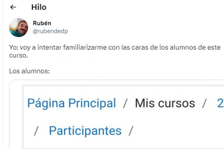 El usuario de Twitter @rubendedp es profesor y, como suele ocurrir, especialmente en las universidades, cada cierto tiempo tiene nuevos alumnos. Esto supone para él un reto porque tiene que aprenderse contantemente nombres y caras nuevas.