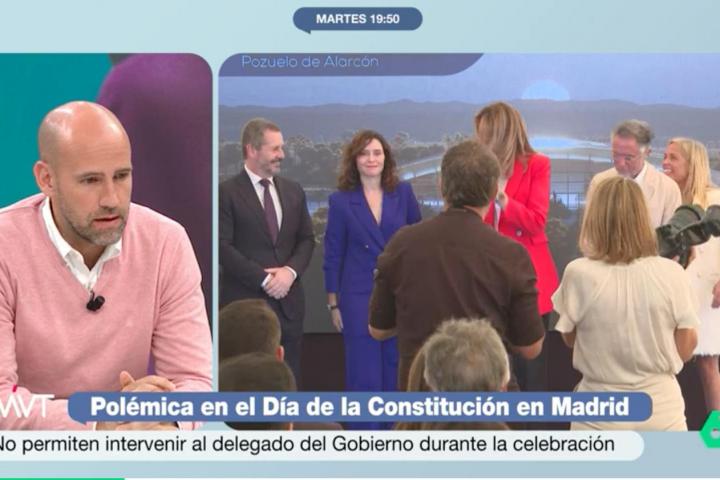 Gonzalo Miró ha hablado en Más Vale Tarde de la política de Isabel Díaz Ayuso de una forma muy contundente. El colaborador del programa de laSexta ha analizado junto al resto de la mesa la decisión de la Comunidad de Madrid de no dejar intervenir al delegado del Gobierno en Madrid a los actos por el día de la Constitución.