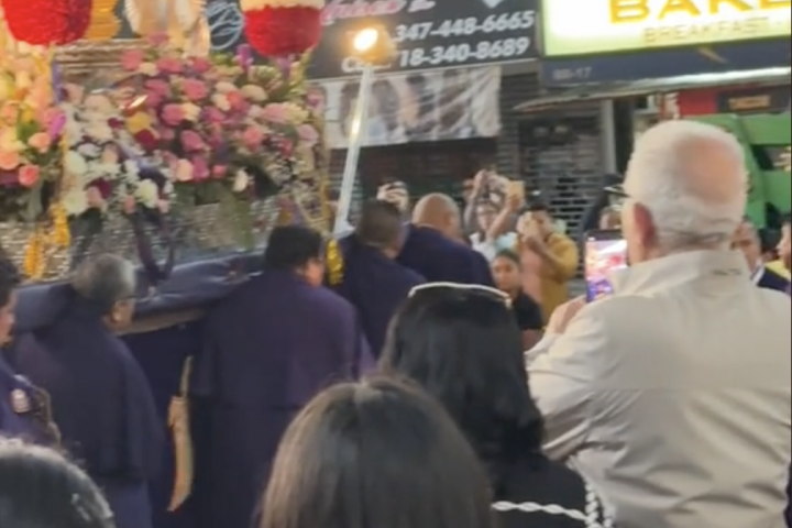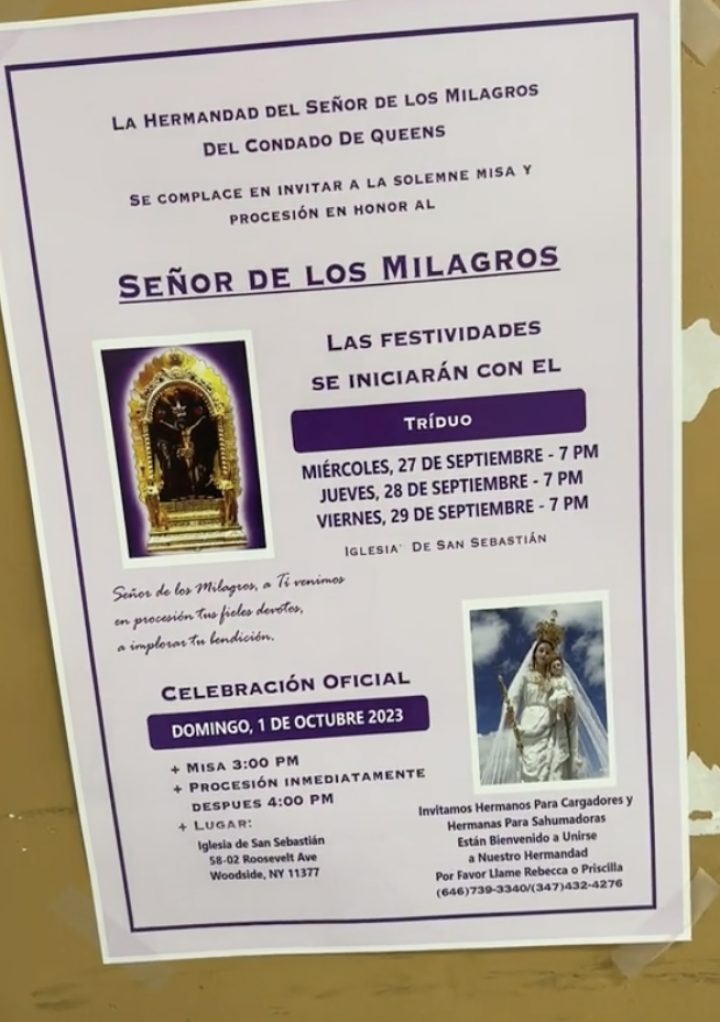 En un cartel se ha enterado por fin de lo que era: una procesión organizada por la Hermandad del Señor de los Milagros del Condado de Queens en honor al Señor de los Milagros.