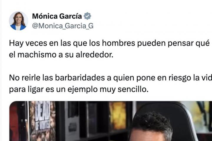 "Hay veces en las que los hombres pueden pensar qué hacer para frenar el machismo a su alrededor. No reirle las barbaridades a quien pone en riesgo la vida de las mujeres para ligar es un ejemplo muy sencillo", ha dicho García en X.