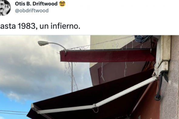 El nombre del local es de lo más orginal: Bar Tranquilo. Además, en la protección de la terraza han añadido un "desde 1984", fecha en la que se abrió. El comentario del tuitero ha sido el siguiente: "Hasta 1983, un infierno".