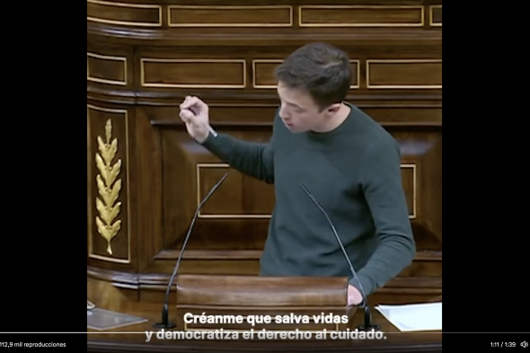 El diputado de Más País Íñigo Errejón ha compartido en Twitter parte de su intervención en el Congreso de los Diputados acerca de una propuesta de su partido que, para sorpresa de todos, ha salido adelante por unanimidad.