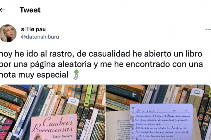 La usuaria de Twitter @datenshiburu ha encontrado en el rastro una auténtica joya dentro de otra joya. La joven ha abierto un ejemplar de Cumbres borrascosas y dentro se ha topado con otra historia que no tiene que nada que envidiar a la de Emily Bronte.