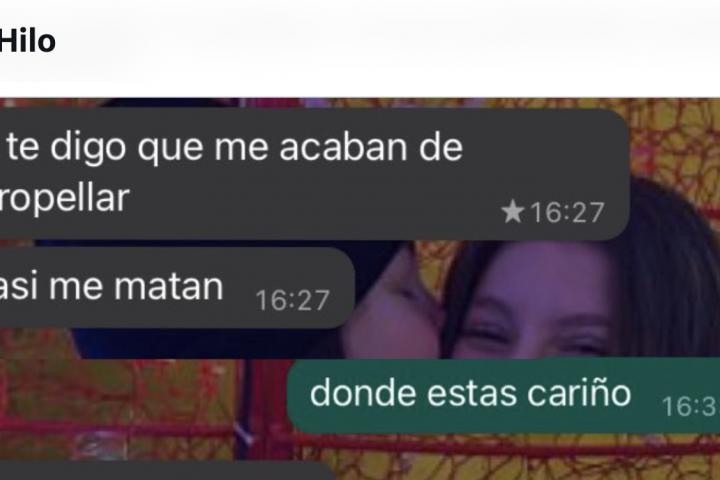 "Si te digo que me acaban de atropellar. Casi me matan", le ha dicho su novia por WhatsApp para su sorpresa. "Dónde estás cariño", le ha preguntado ella. "En el gimnasio. Me he venido en coche", ha respondido ella.