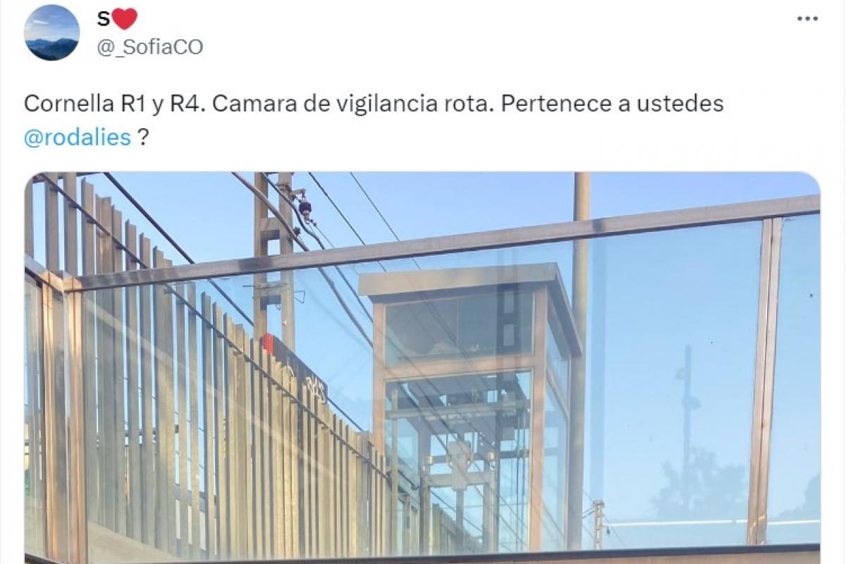 Todo ha ocurrido después de que esa viajera informase de que había una cámara de vigilancia rota en la entrada de una estación. "Cornellá R1 y R4. Cámara de vigilancia rota. ¿Pertenece a ustedes @rodalies?", preguntó.