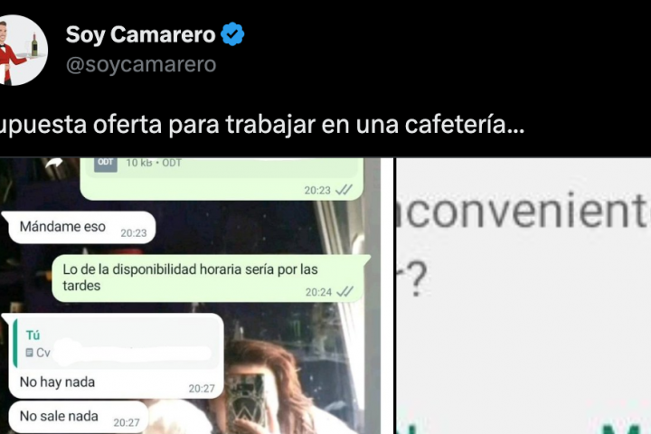 "Supuesta oferta para trabajar en una cafetería...", ha escrito junto a las capturas de la conversación en un mensaje que supera los 4.500 me gusta.