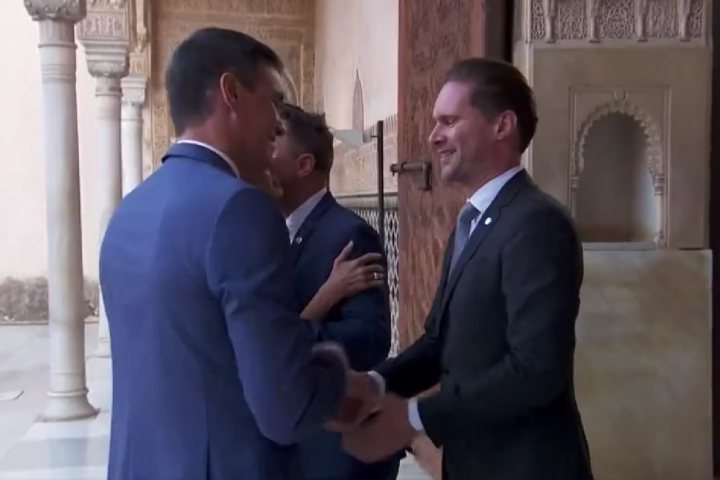El presidente del Gobierno en funciones, Pedro Sánchez, dejó una llamativa imagen durante la recepción al resto de líderes europeos que se desplazaron este jueves a Granada para celebrar la Cumbre de la Unión Europea.