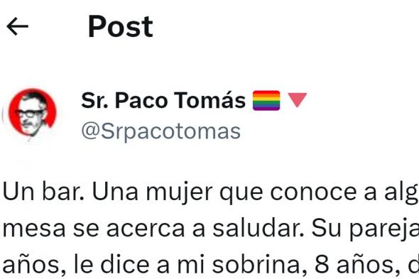 Paco Tomás cuenta lo que le ha pasado con su sobrina en un bar y provoca una reacción unánime en Twitter