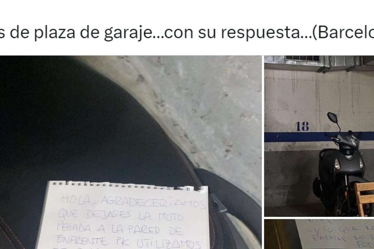 "Líos de plaza de garaje... con su respuesta... (Barcelona)", ha señalado, junto a tres imágenes que han dejado alucinando a más de uno en la red social del pájaro azul.