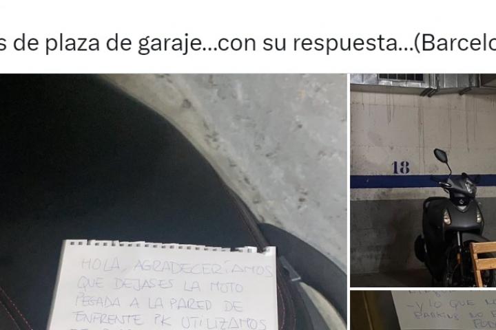La cuenta de Twitter @LiosdeVecinos, perfil en el que se suelen compartir numerosos carteles y mensajes que algunas personas se encuentran en restaurantes, calles y en su propia comunidad de vecinos, ha conseguido que uno de sus tuits se haya hecho muy viral tras mostrar lo que ha ocurrido en una plaza garaje de Barcelona.