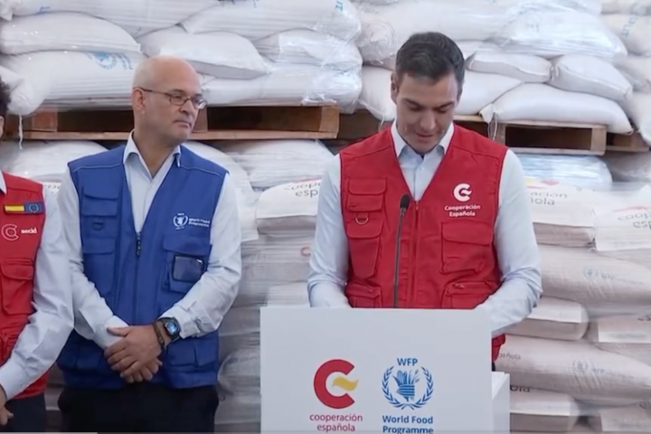 El presidente del Gobierno, Pedro Sánchez, está provocando admiración por lo que ha hecho durante un acto en la base logística del Programa Mundial de Alimentos de las Naciones Unidas (WFP), en el Puerto de Las Palmas de Gran Canaria.