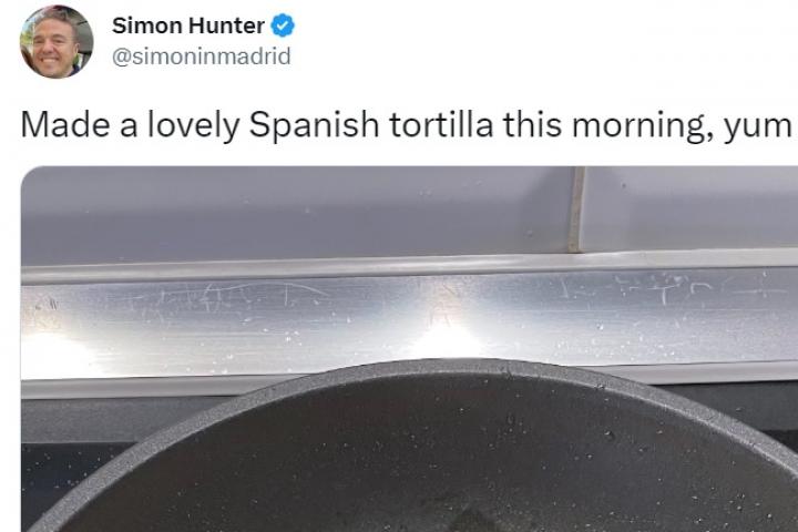 El periodista británico Simon Hunter ha provocado cientos de comentarios en Twitter tras gastar una broma sobre la presunta "tortilla española" que había cocinado en las últimas horas.