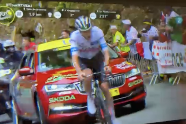 La persona que va en el coche rojo la lía en el Tour: saca la mano y se quejan hasta en La2