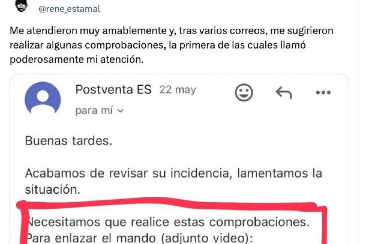 El resultado tras cumplir esa acción fue exitoso y el ventilador comenzó a funcionar en cuanto accionó el interruptor de la luz. "La historia concluye felizmente con mi correo de respuesta al servicio técnico, que adjunto en su totalidad aquí abajo. "Muchas gracias por vuestra atención y, si me veis por la calle con una bolsa de basura cubriendo mi rostro, espero que lo comprendáis", ironiza, adjuntando una foto del mail que mandó.
