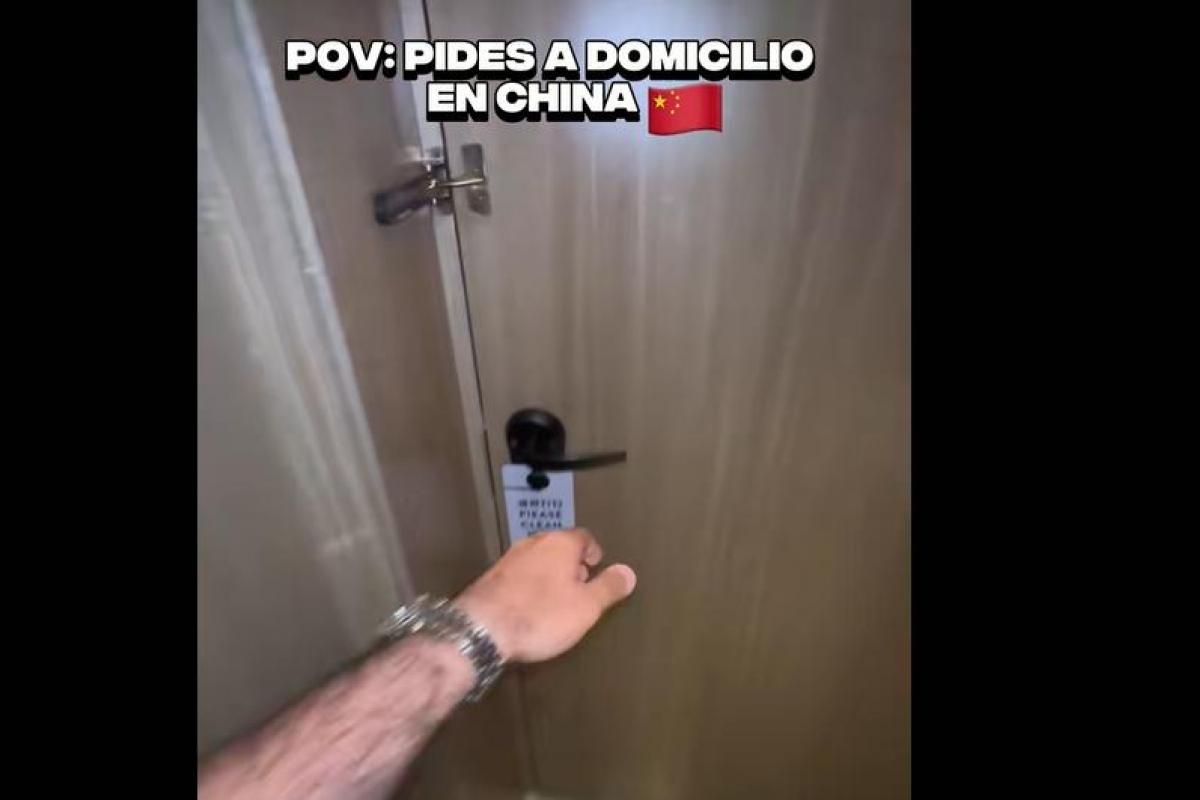 "He pedido comida a domicilio en un hotel en China y han llamado a la puerta, no sé cómo, porque se supone que en China...", ha expresado al principio del vídeo y, antes de revelar lo que pasa allí, abrió la puerta y, aun sabiéndolo, siguió sorprendido.