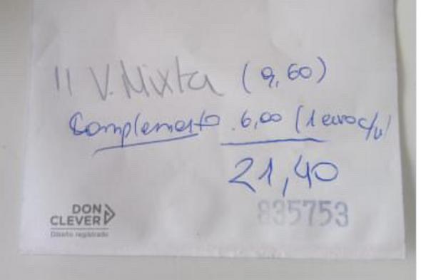 En la imagen se puede ver una especie de papel donde los cobros están hechos a boli y aparece un cobro extra de 6 euros por seis sobres de mayonesa, a euro por sobre, algo que ha dejado a muchos de piedra.