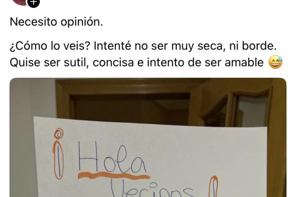Por eso, la usuaria de Threads @tamicarballo_ ha pedido opinión en esa red social sobre una nota que le ha dejado a sus vecinas y con la que, según cuenta, ha tratado de ser "no ser muy seca, ni borde", sino "sutil, concisa y amable".