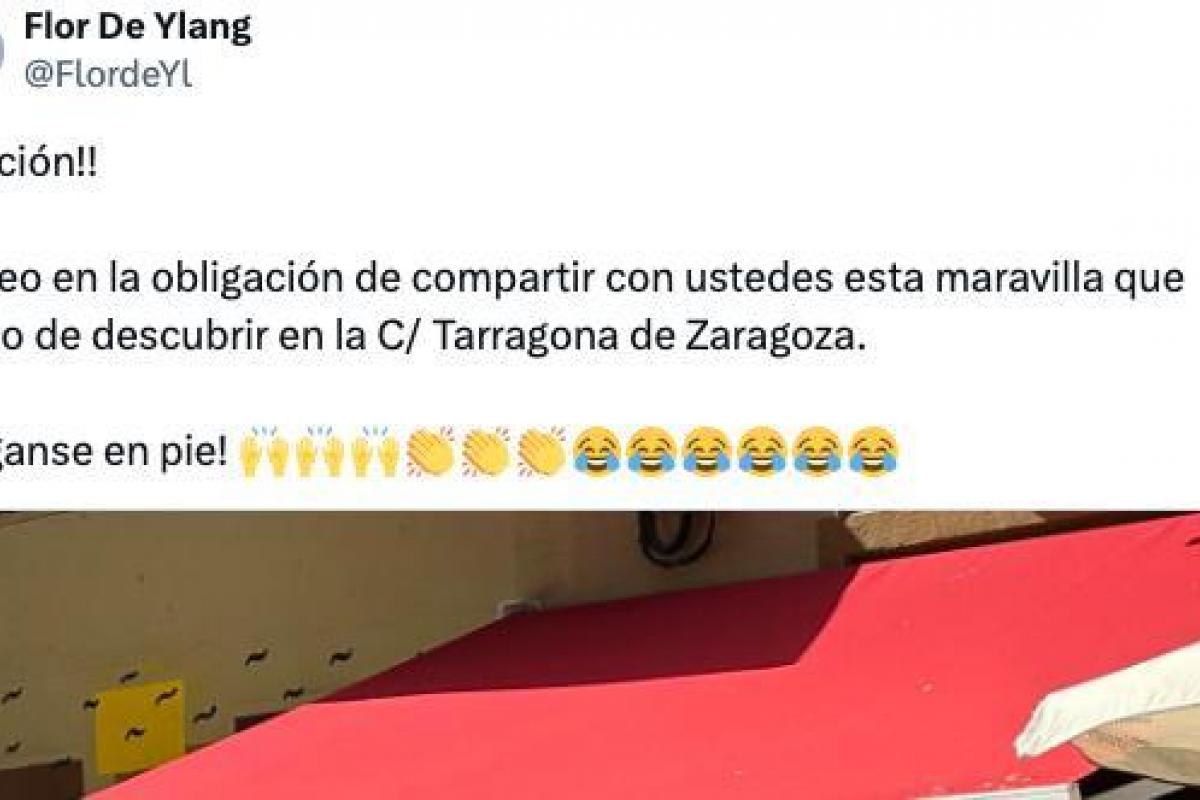 "Atención!! Me veo en la obligación de compartir con ustedes esta maravilla que acabo de descubrir en la C/ Tarragona de Zaragoza. Pónganse en pie! 🙌🙌🙌👏👏👏😂😂😂😂😂😂 ", ha escrito la tuitera.