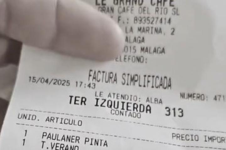 En una publicación en la que muestra el ticket en cuestión, esa persona asegura: "Nos acaban de robar en el centro de Málaga. Una pinta y un tinto de verano ocho euros y cinco euros".