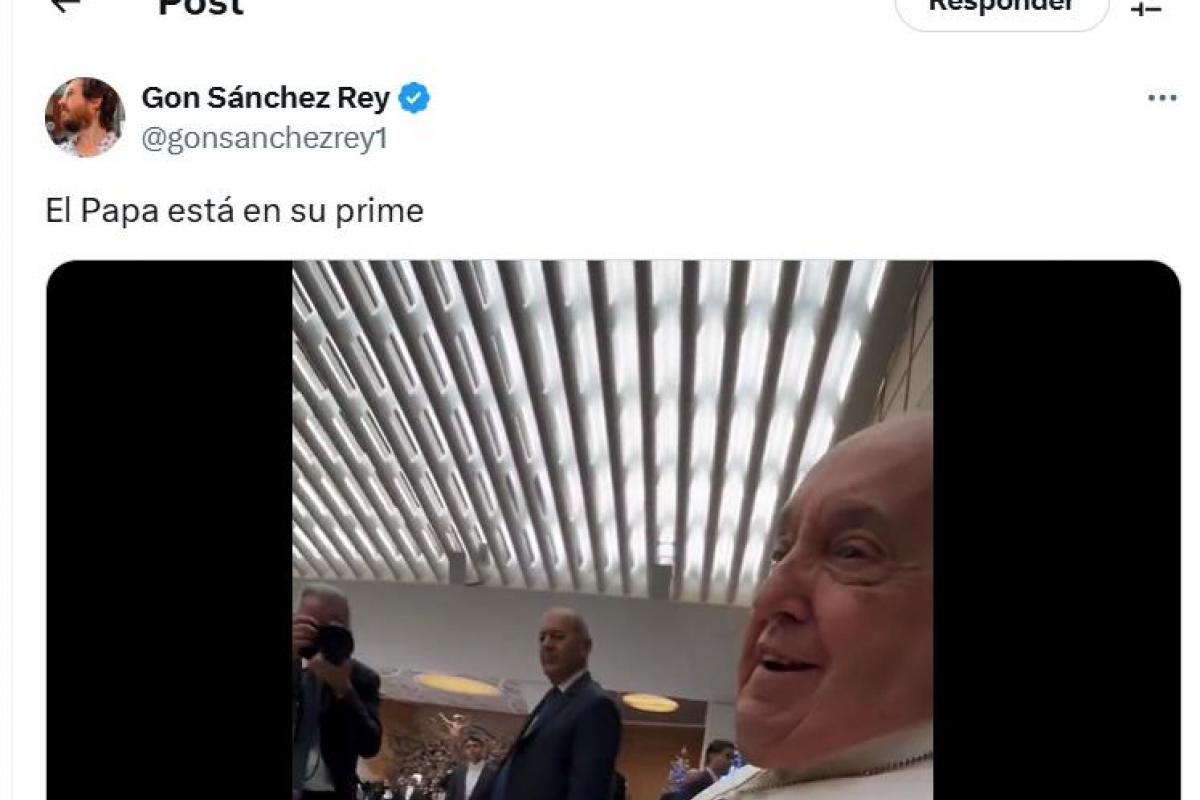 "Santo Padre un consejo para los matrimonios jóvenes", se escucha decir en un vídeo que ha subido a la red social X el usuario @gonsanchezrey1.