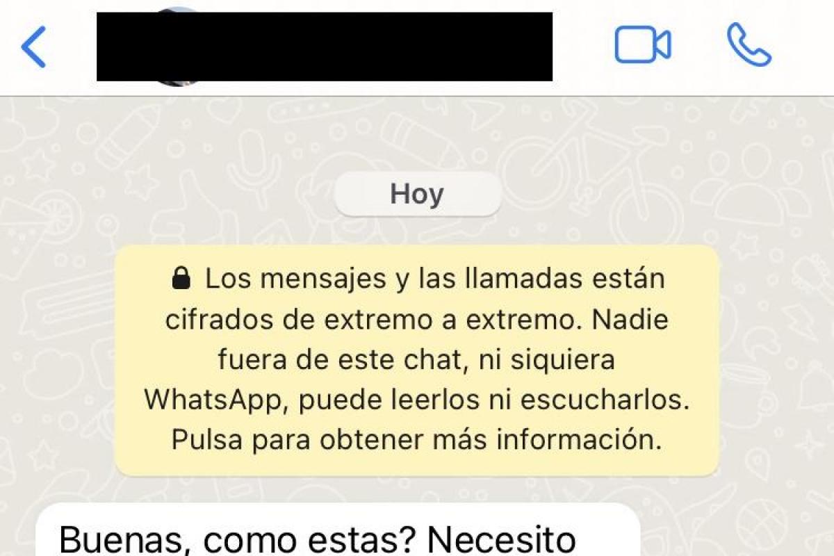 En la conversación, los delincuentes que se hacen pasar por un contacto de la víctima le dicen: "Buenas, ¿cómo estás? Necesito que me hagas un favor".