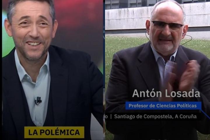 Pocas veces se ha visto a Antón Losada como hablando así de Ayuso: la cara de Javier Ruiz lo dice todo